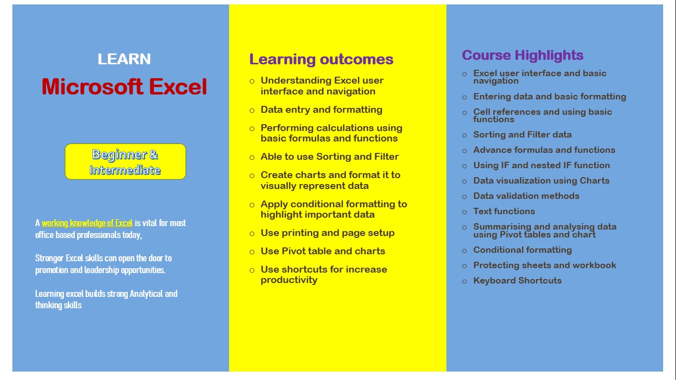 Learn Excel from the ground up, starting with basic operations and progressing to advanced functions, data analysis, and automation.